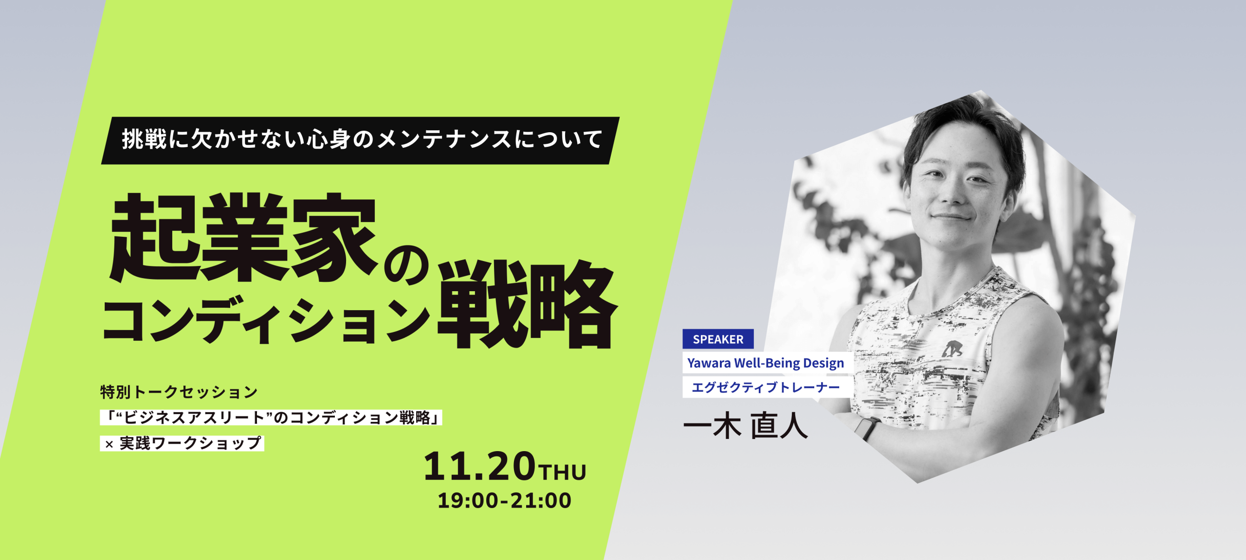 本セッションでは、パフォーマンスコーチとして多くの経営者・アスリートを支援してきた一木氏が登壇。